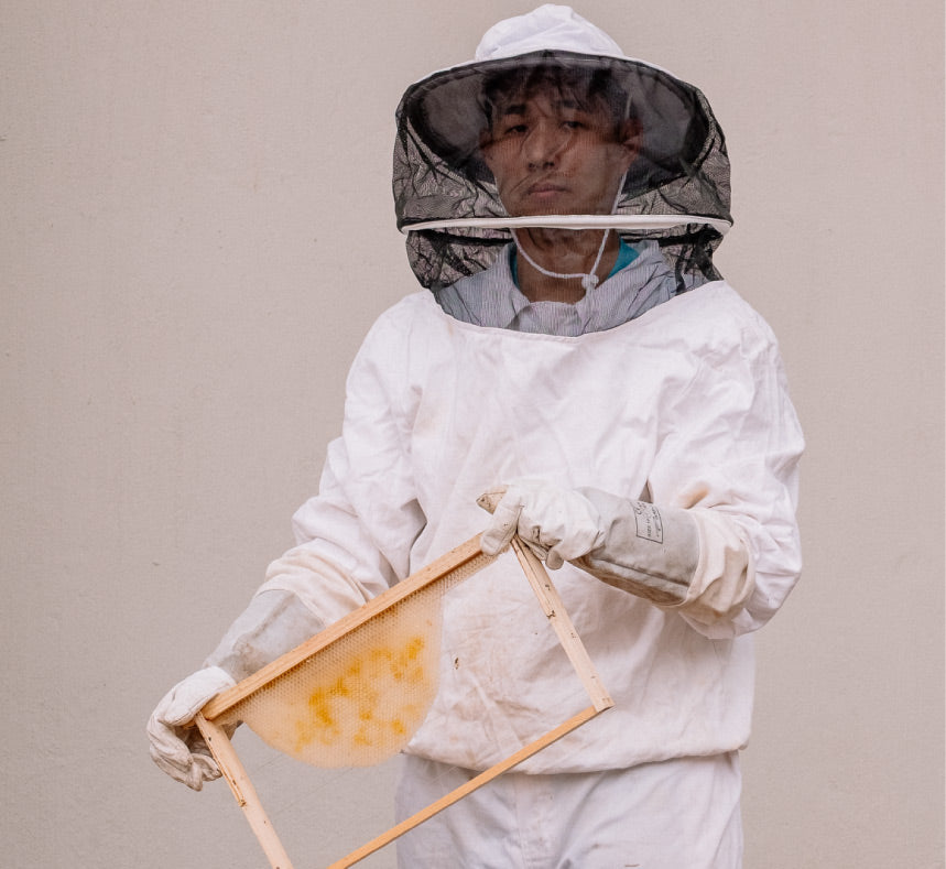 While completing his community service in the public health sector in Gqeberha (Port Elizabeth), South Africa, he witnessed first-hand the effects of inequality and unemployment. Then came a lightbulb moment—an active beehive in an HR office roof sparked his fascination with bees. That curiosity led him to study beekeeping in 2015, and soon he was producing small harvests of honey.
