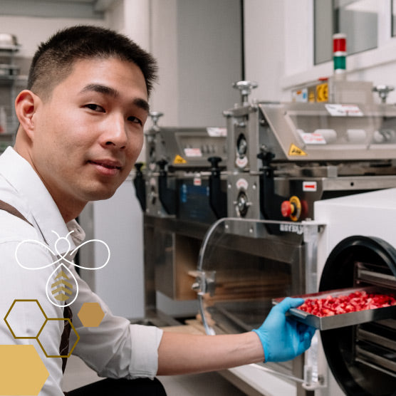 At De Chen Nougat, we freeze-dry our fruits to lock in their natural sweetness, vibrant flavour, and nutritional integrity without relying on preservatives. This gentle process removes moisture while preserving the delicate textures and aromas that make each bite extraordinary. It’s how we ensure every piece of nougat carries the full essence of the season, just as nature intended.